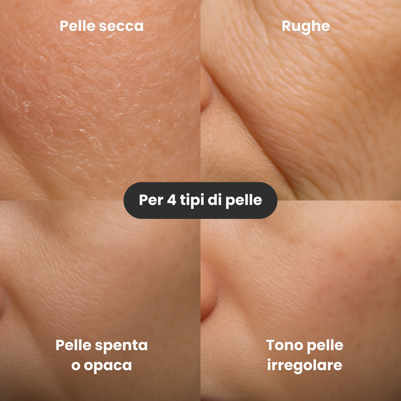 Riduce rughe, segni d’espressione e macchie cutanee, migliorando al tempo stesso la luminosità e tonicità della pelle.